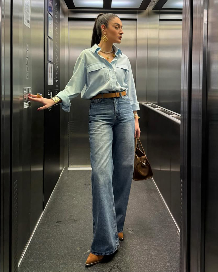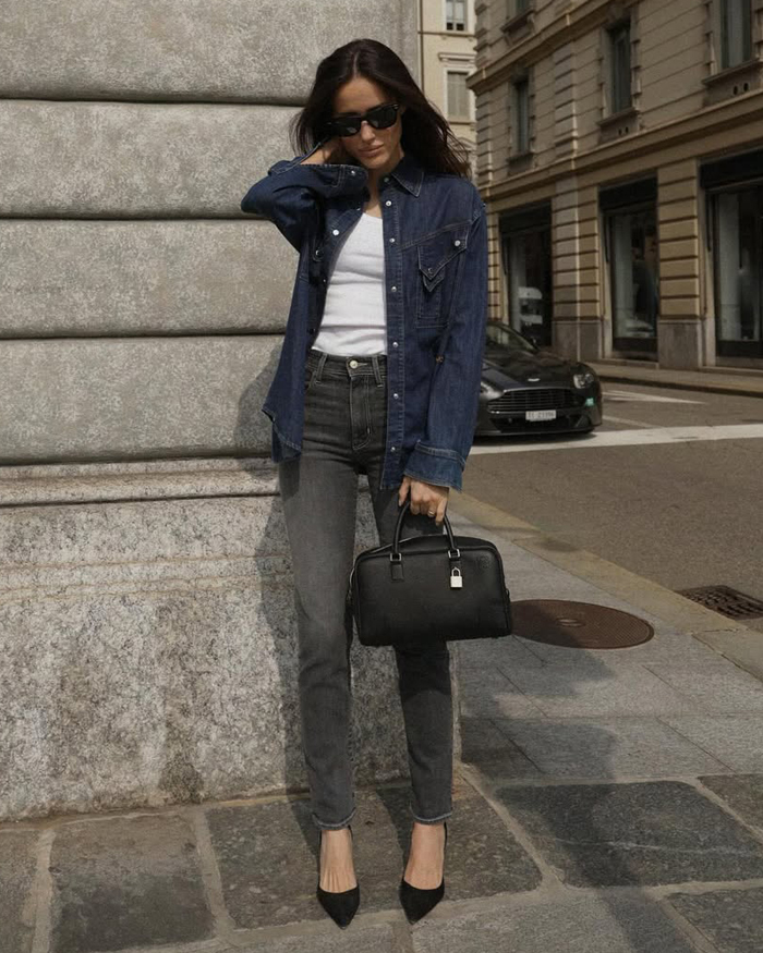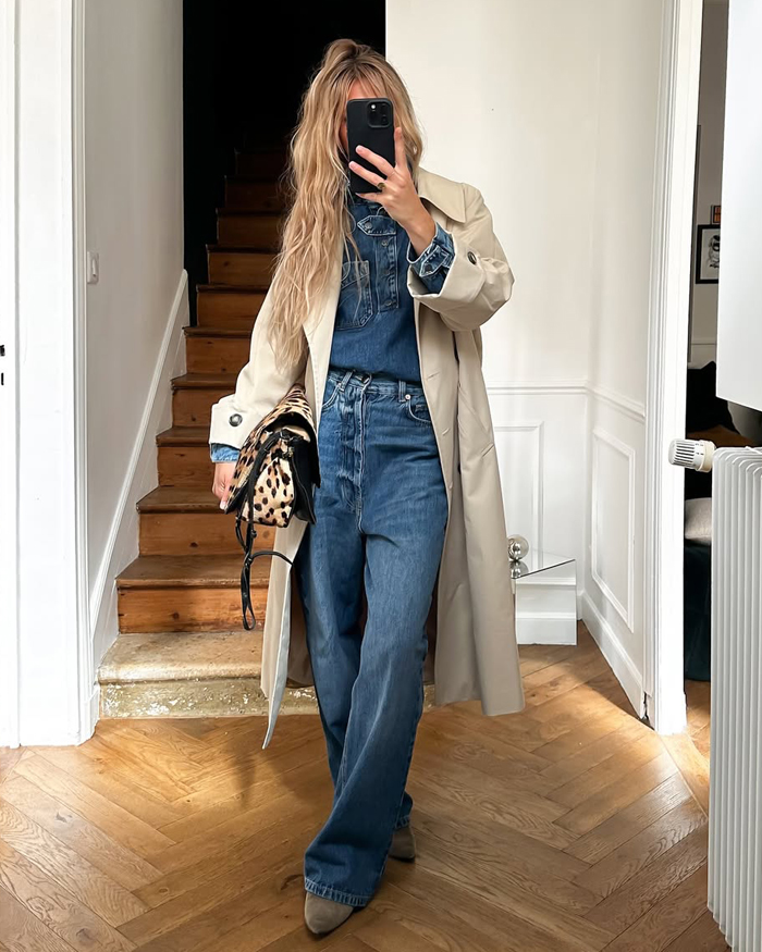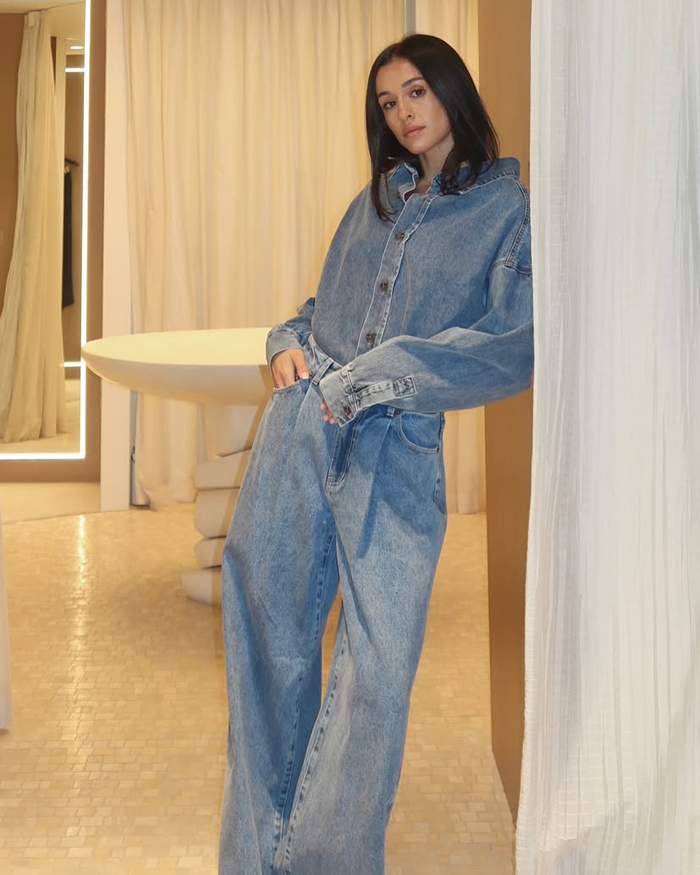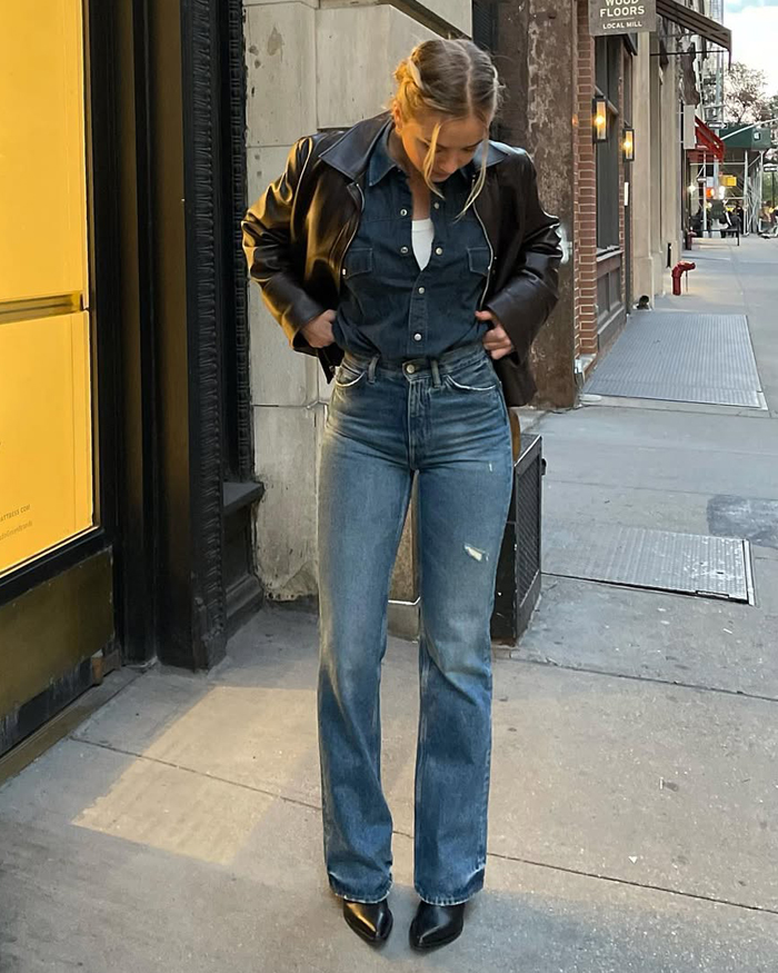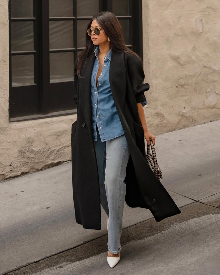If the idea of denim-on-denim feels a little too much, ease into the trend by mixing washes and colours (think a classic blue denim shirt with sleek black jeans). You can also break it up with layers, like tossing a chic blazer, trench coat, or leather jacket over your denim base.