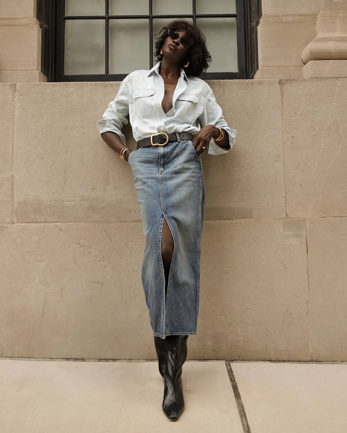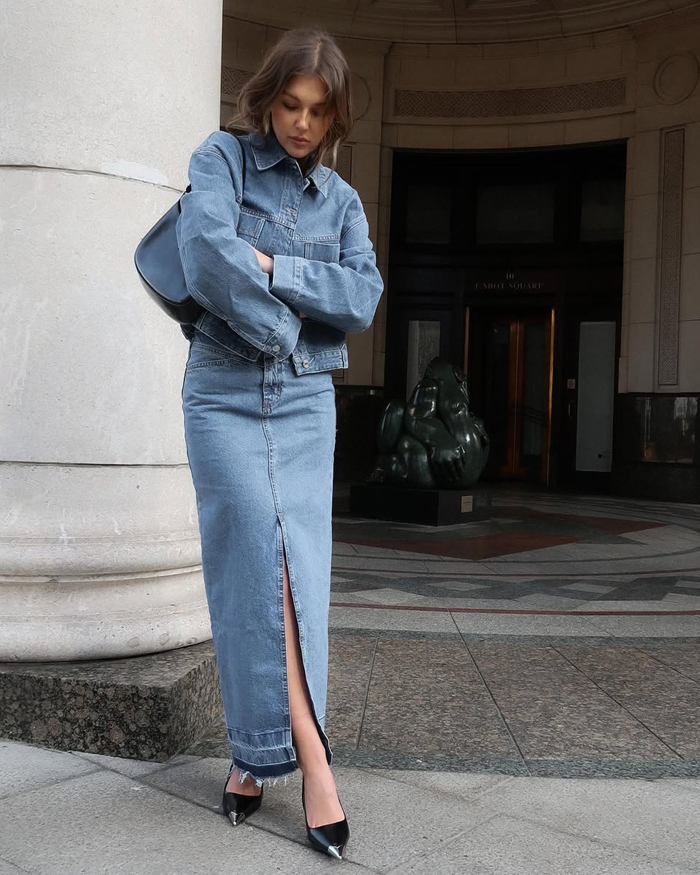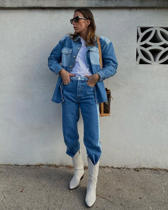 On the flip side, if you’re feeling bold, lean all the way in and go for a head-turning finish, like pairing your denim separates with over-the-knee denim boots. Whether you keep it subtle or go full-on statement, this look is everywhere right now and impossible to ignore.